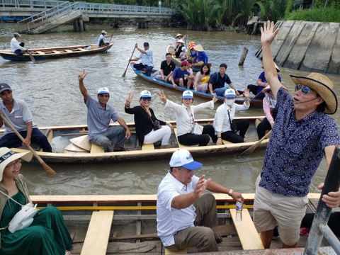 Đoàn đi thuyền chèo tại Mỹ Tho